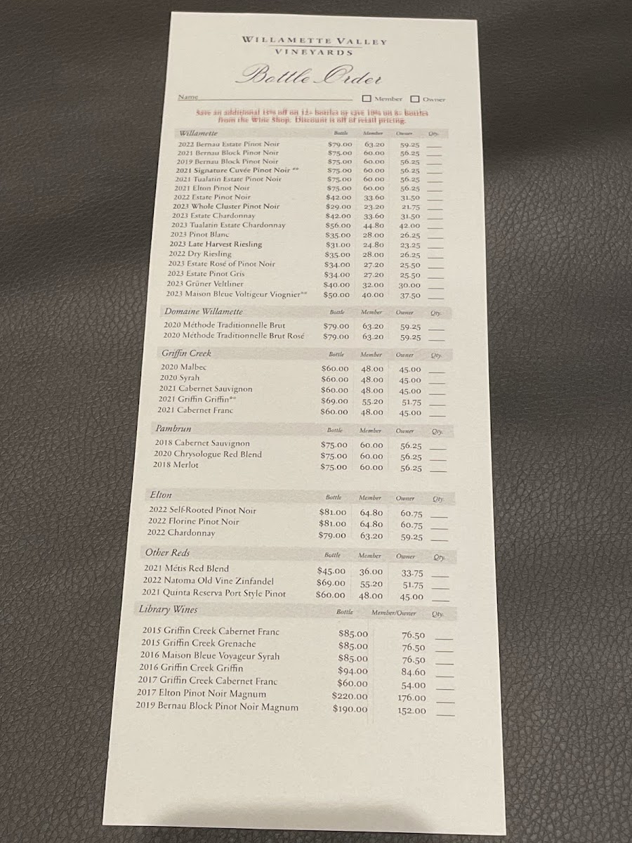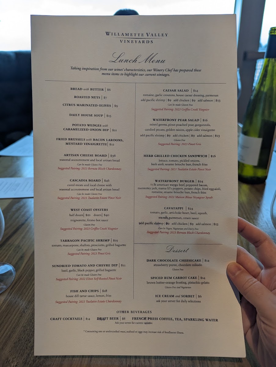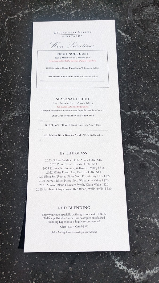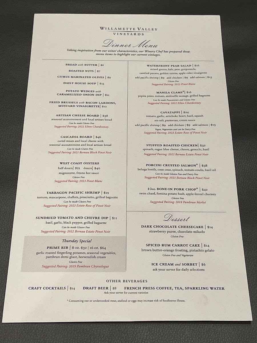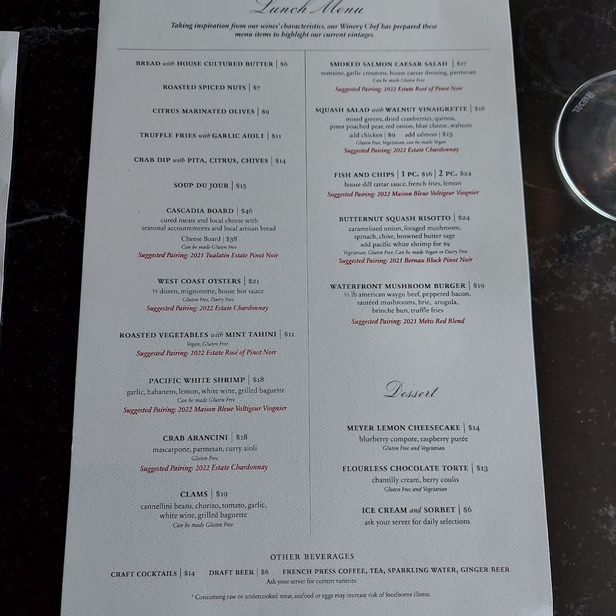 Willamette Valley Vineyards - Vancouver Waterfront Menu (2025 Update)